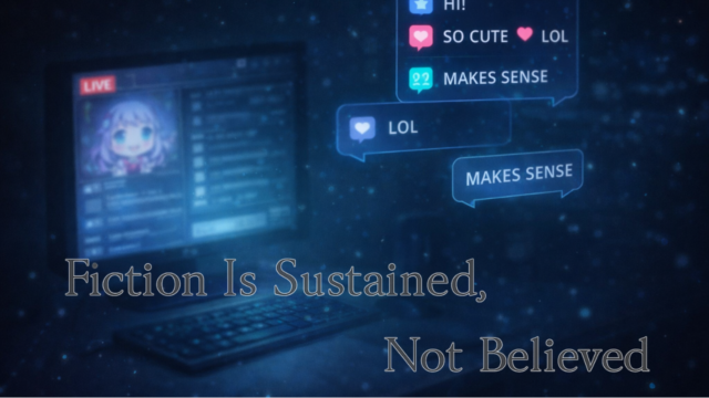 VTubers are clearly fictional—yet they feel real.This essay explores how make-believe, participation, and collective skill allow fiction to function as social reality.